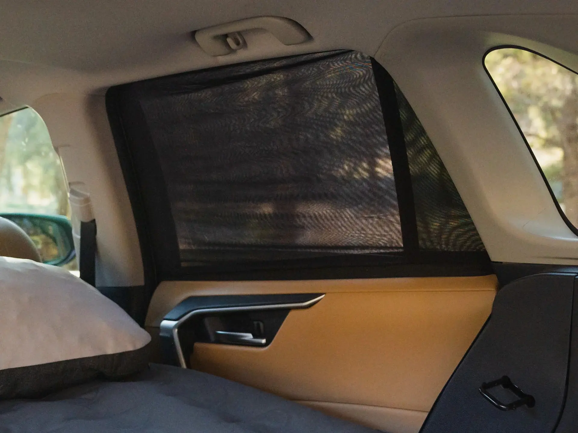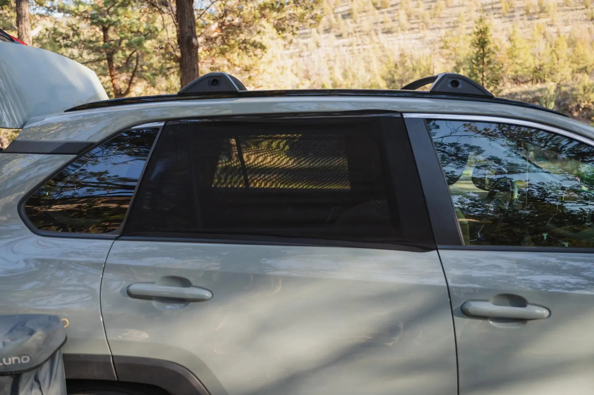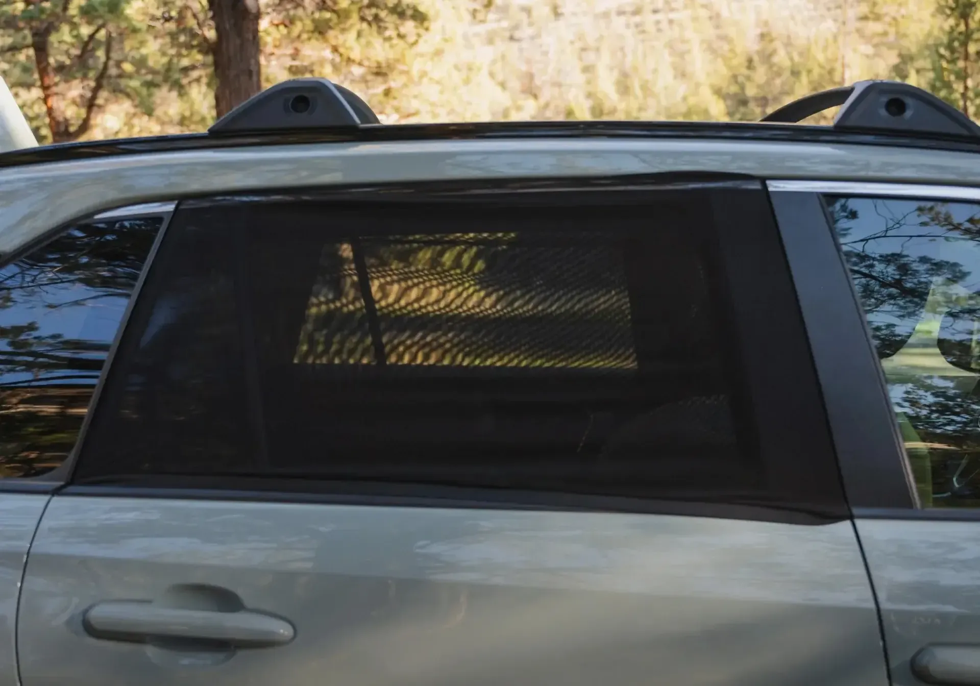 The Lyzen Car Window Screens readily slide over rear vehicle doors for quick and temporary installation and removal.