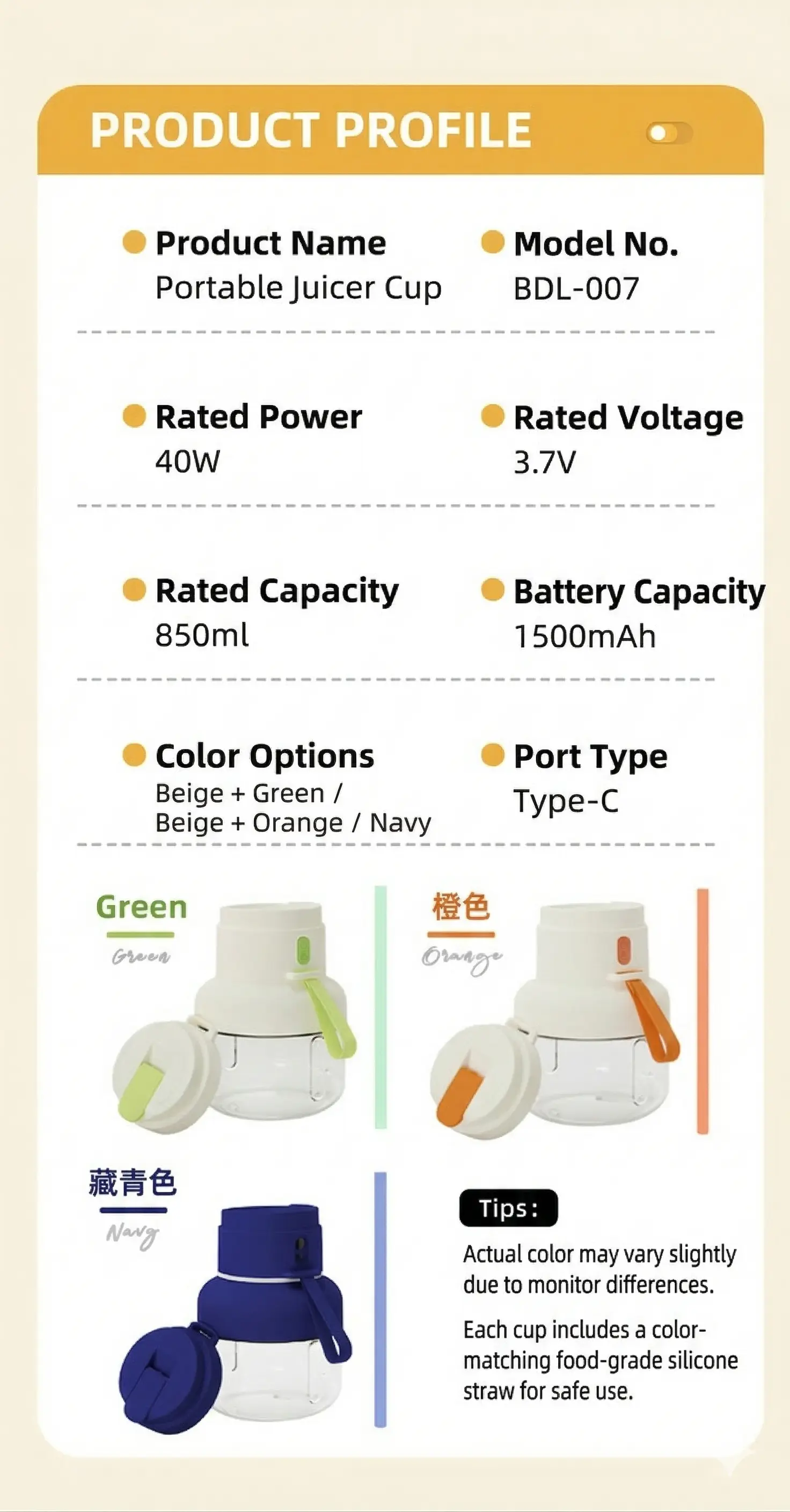 - Package Contents: Main unit + Cup + Straw